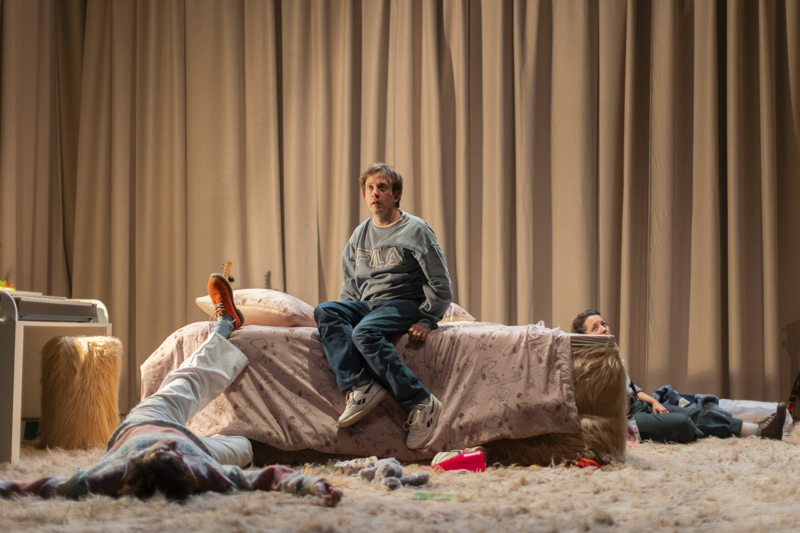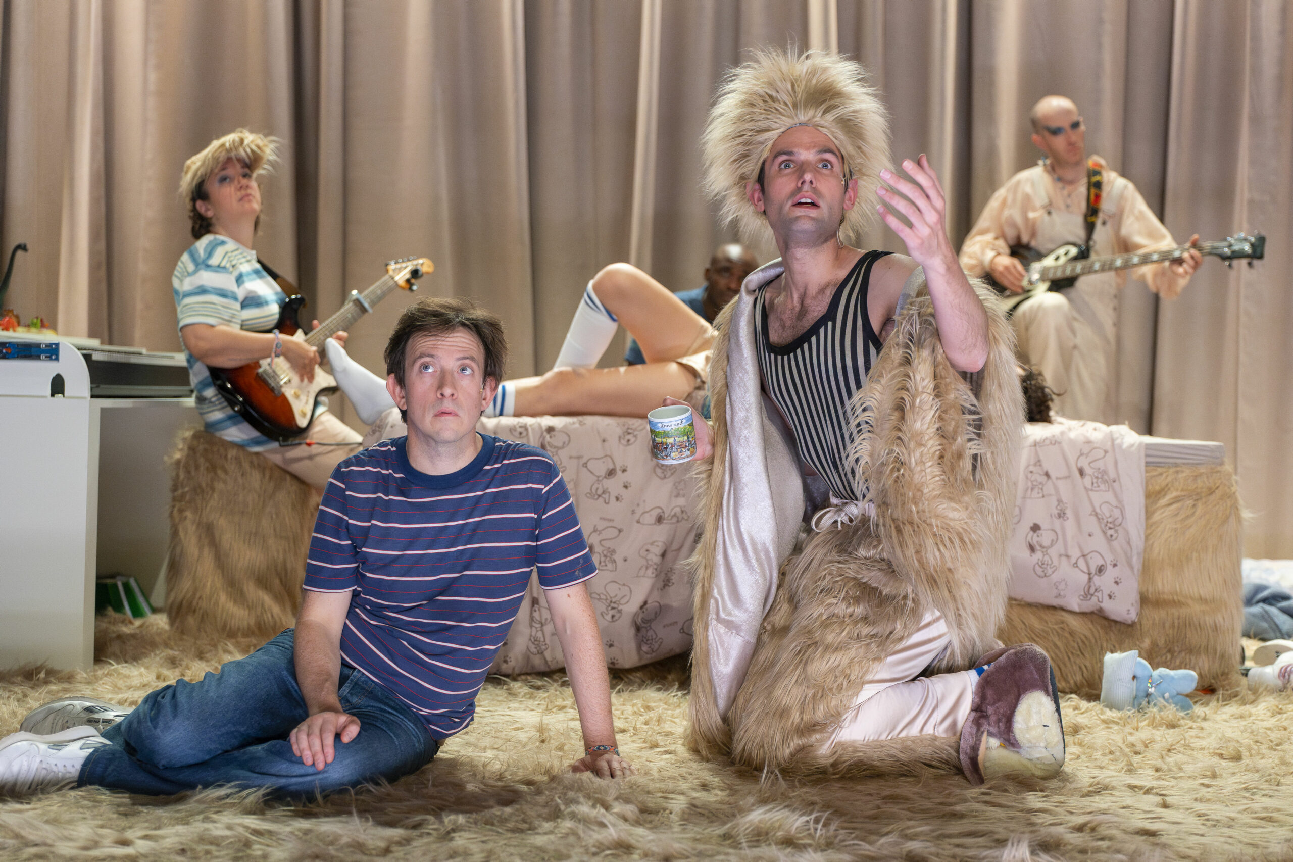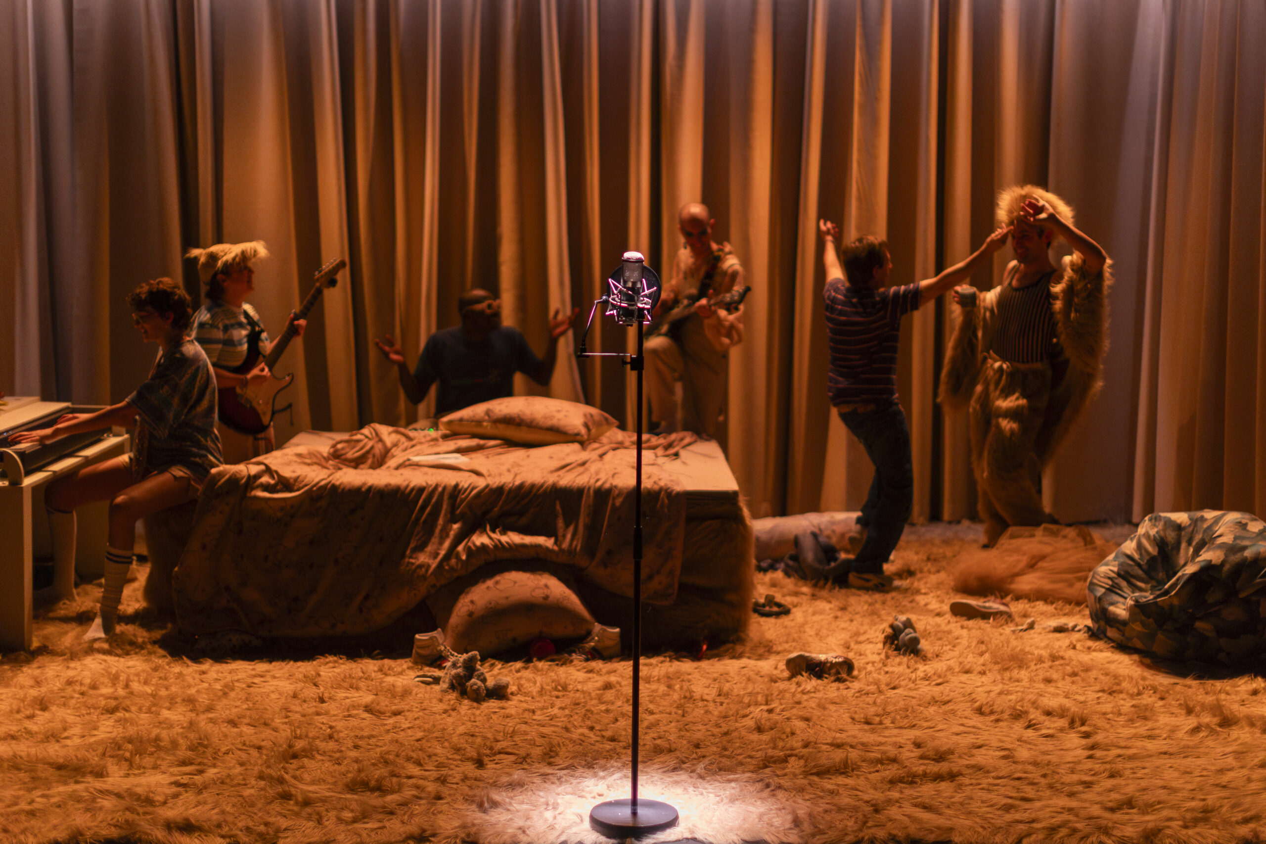 Sylvain est fan de Mylène Farmer depuis ses dix ans. Il est de tous les concerts et répète en secret ses chorégraphies. À travers elle, il découvre un irrésistible sentiment de liberté. Il commence à briller, à prendre confiance en lui. Sylvain s’imagine âme sœur de la star : confident, ami, répétiteur. Il pense qu’elle lui chuchote à l’oreille. Dans À Mots doux, grâce à la magie du théâtre, ce rêve devient réalité. Le personnage de Sylvain s’empare de la scène, un espace où « sa Mylène » peut se déployer librement, comme dans sa tête. En chansons, dans le secret de sa chambre ou dans les coulisses de Bercy, il nous entraîne dans un voyage mental, où la relation entre le fan et son idole vient nous interroger sur nos propres désirs. Quatre comédiens et deux musiciennes incarnent tous les personnages de ce spectacle à la fois intime, introspectif et délirant. Un hommage vibrant à la culture populaire, dans ce qu’elle a de plus fédérateur et joyeux — sans contrefaçon !