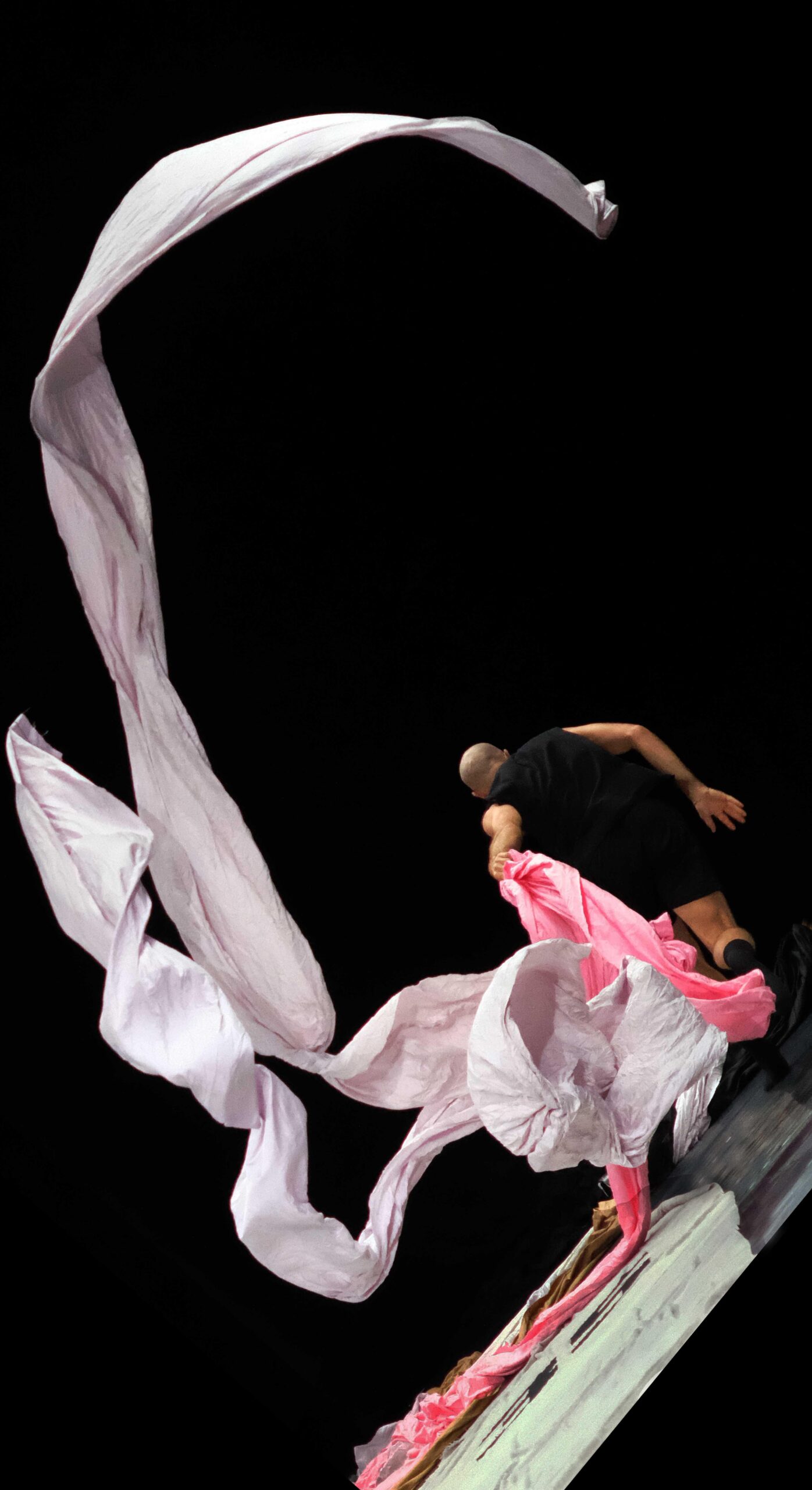 « Mille cinq cents mètres de soie bleue, rouge, blanche, orange manipulée par six interprètes lèvent une marée géante d’une beauté plastique éberluante et sans cesse renouvelée. » Le Monde